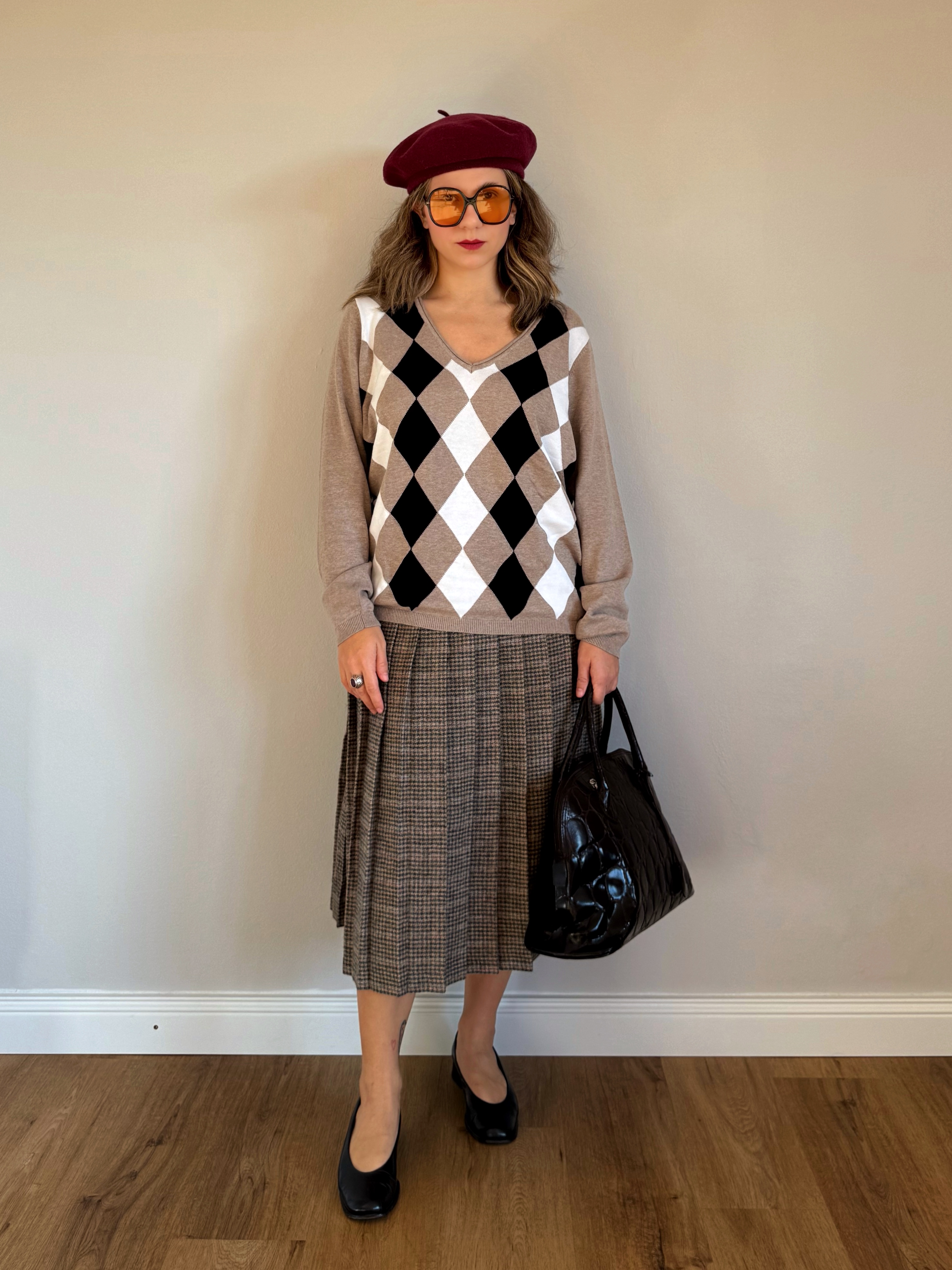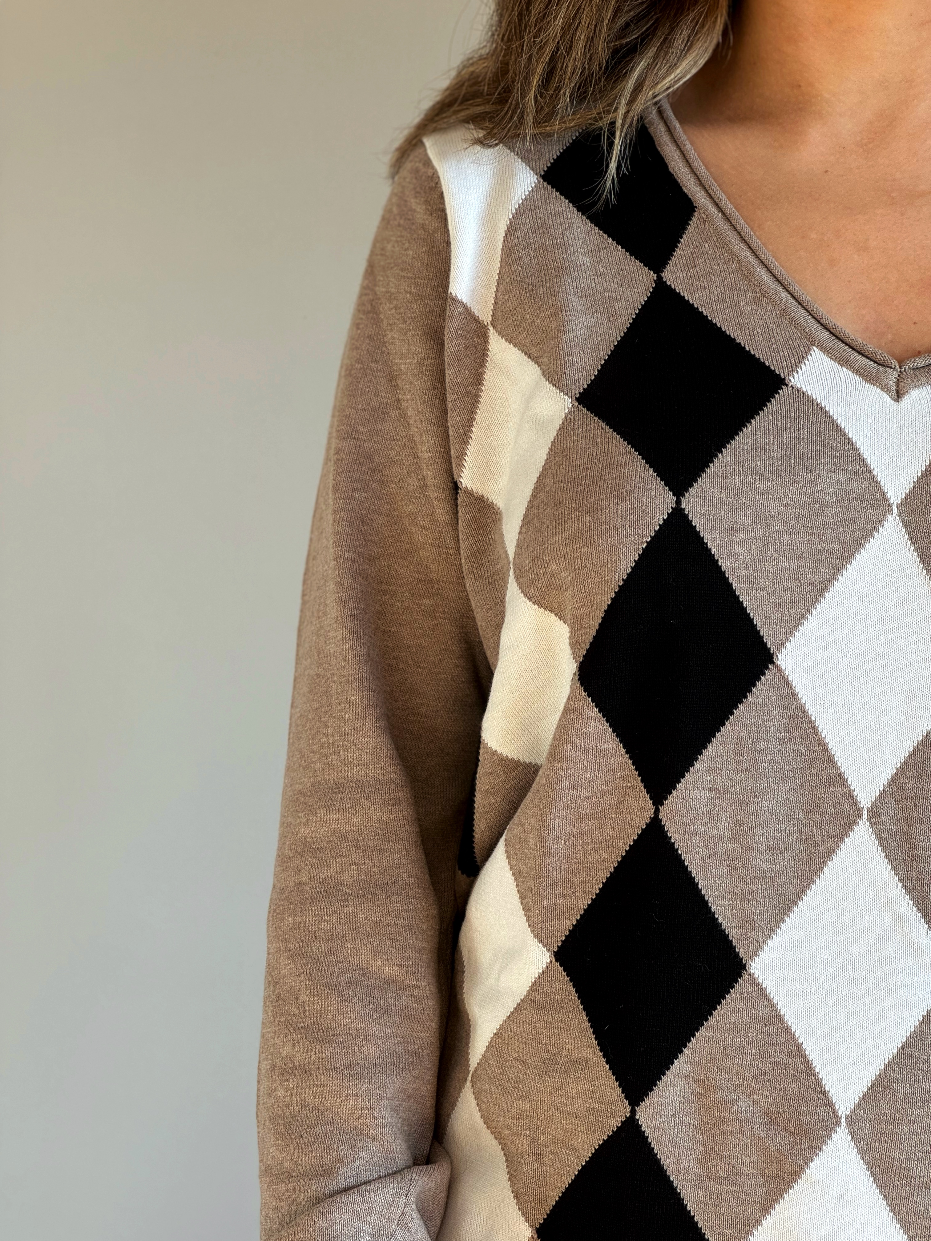 Beżowy sweter w romby