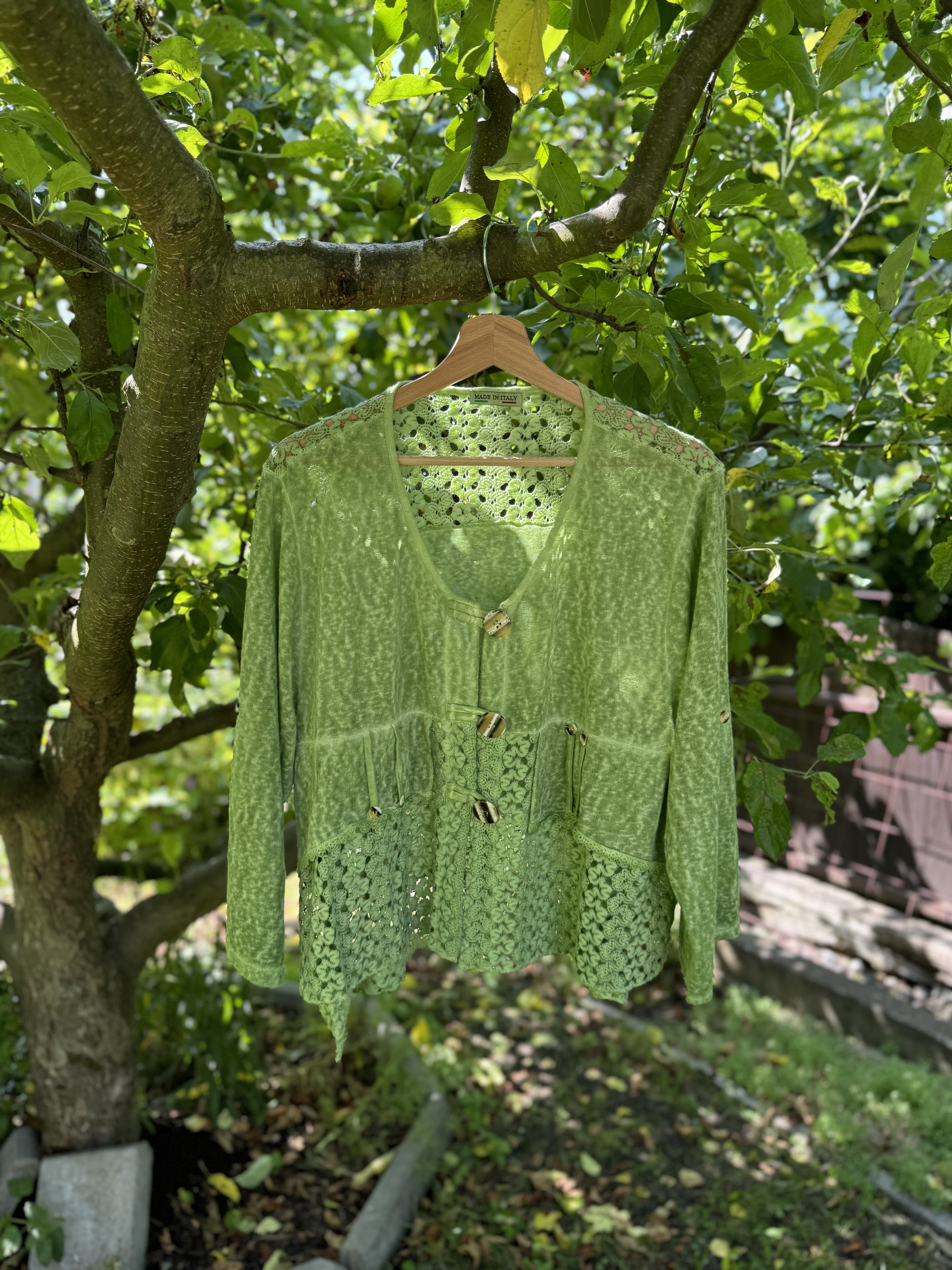 Brak metki z rozmiarem, moim zdaniem będzie pasować na rozmiary S-L w zależności od preferowanego dopasowania (zdjęcia na osobie noszącej rozmiar M).
