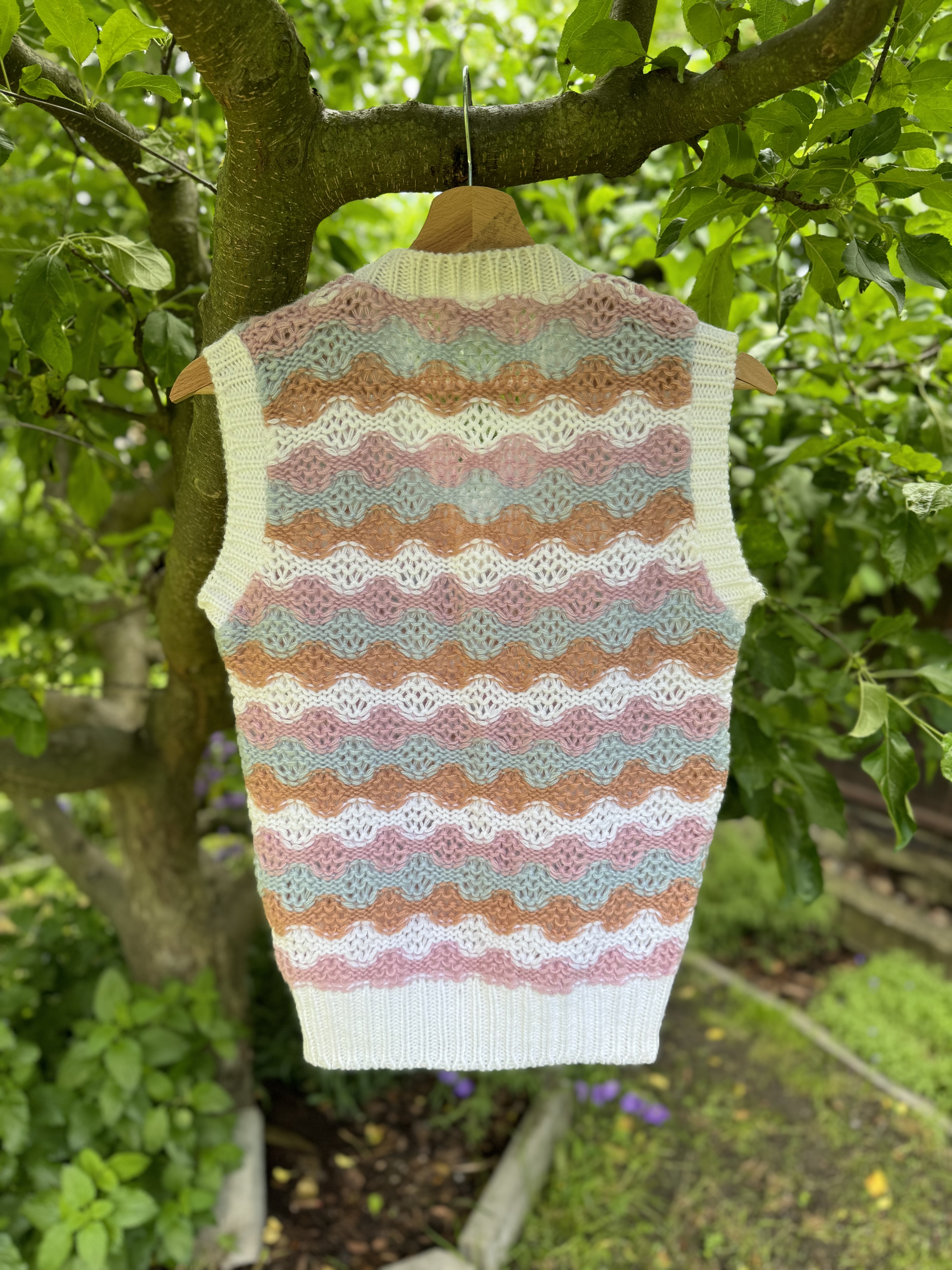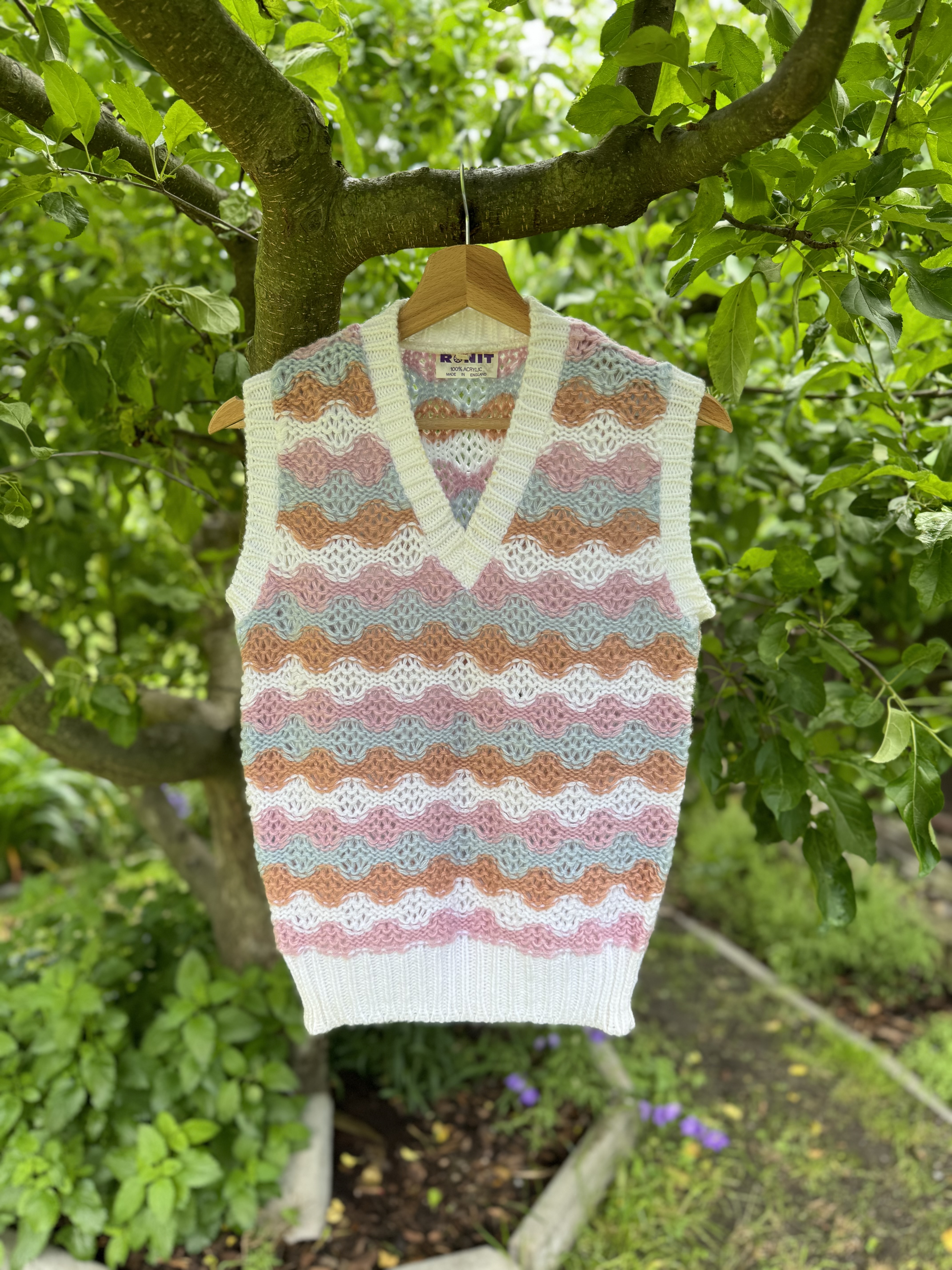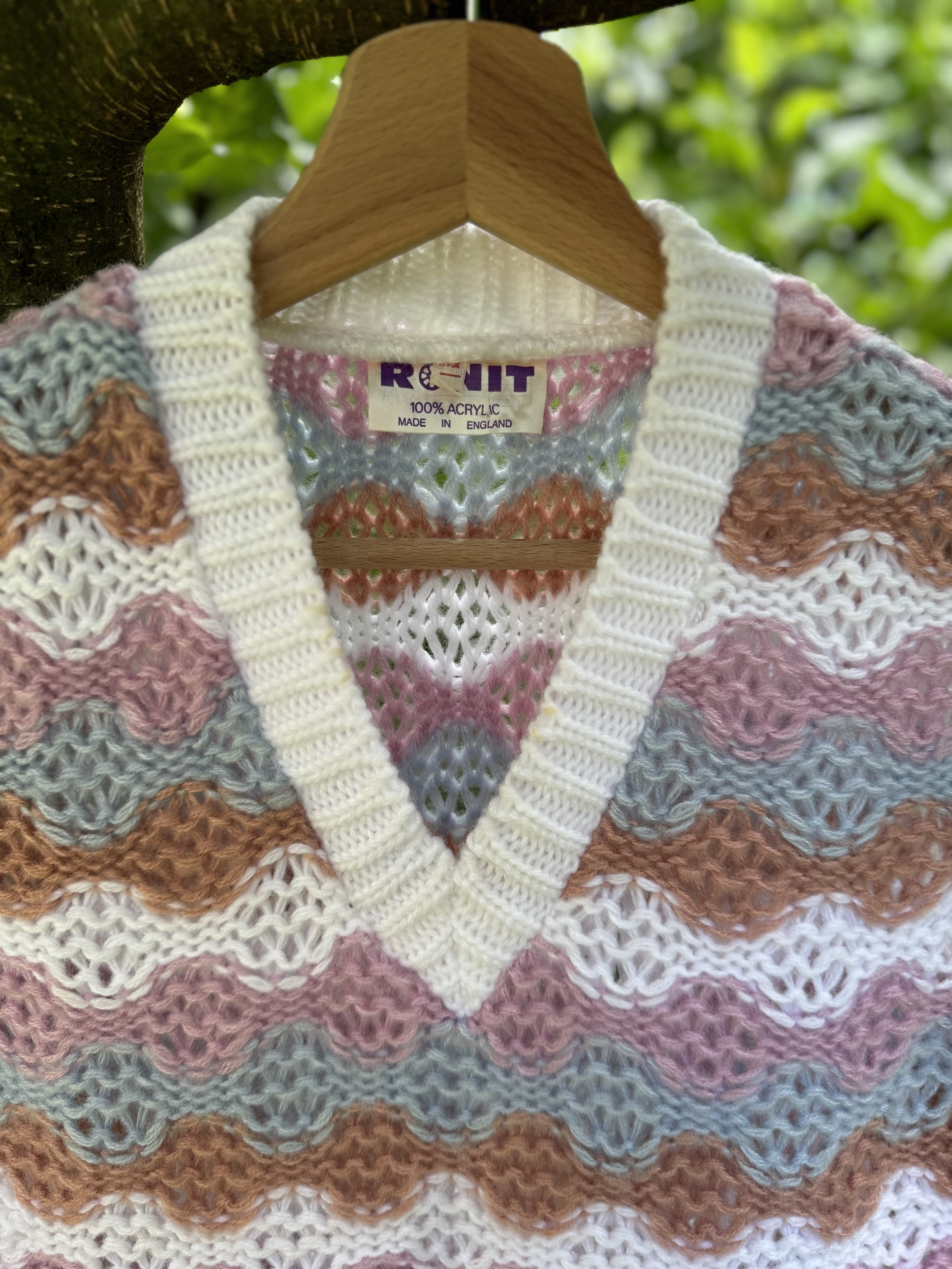ABSOLUTNY UNIKAT! Kamizelka w typowe dla lat 70. wzory wyprodukowana w Anglii.