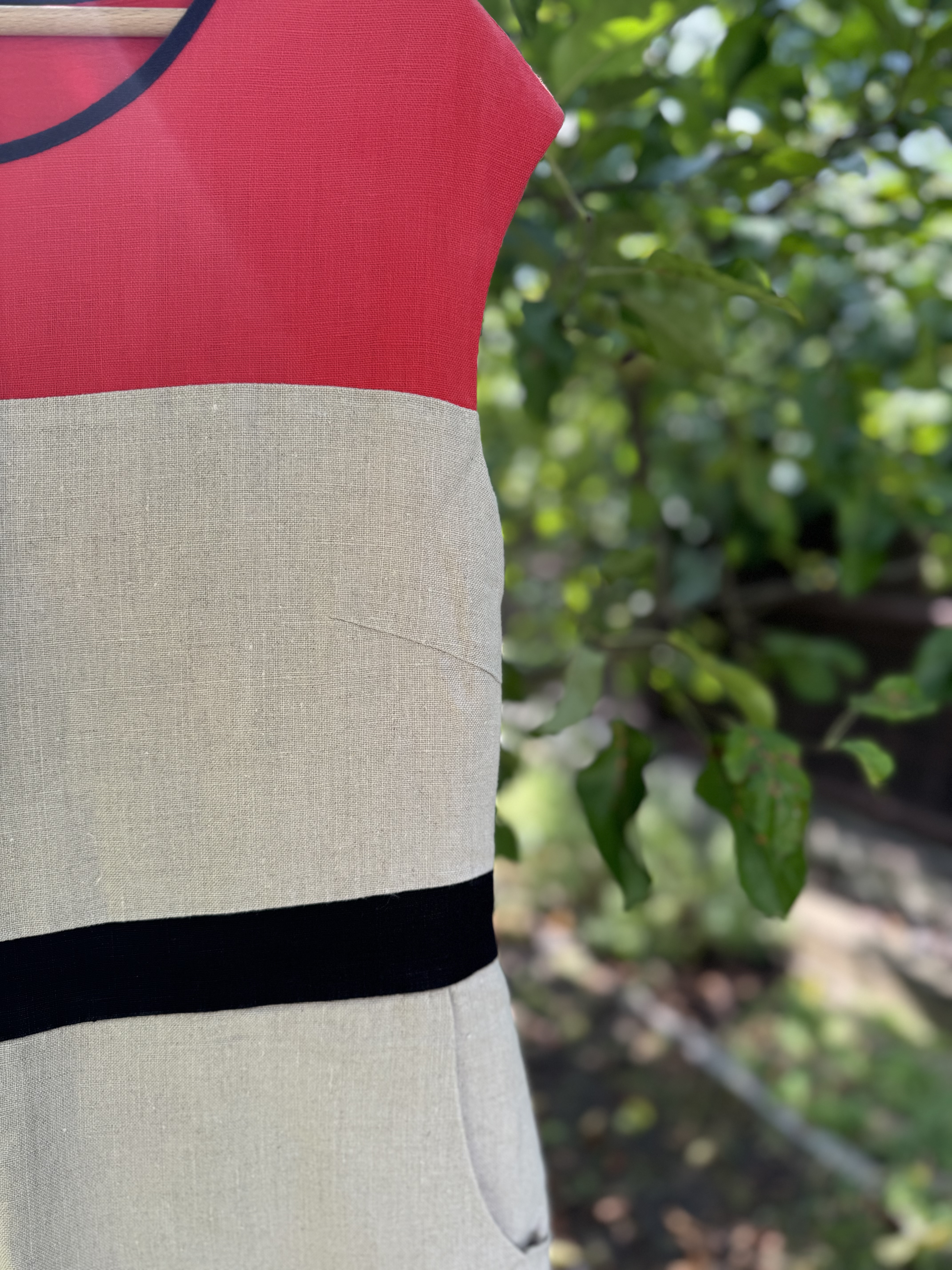 Lniana sukienka w geometryczny wz贸r